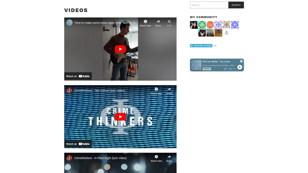 This is where the biggest makeover occurred: I’ve transformed the page design into a clear tile layout, placing the artwork front and center. Click on one of my albums or singles and you’ll be taken to their corresponding Spotify, YouTube or Bandcamp pages.